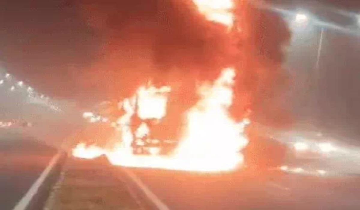 हाइवे पर ट्रैक में आग लगने से डर का माहुल बन गया। ट्रक चालक और उसके साथी ने ट्रक से कूदकर अपनी जान बचाई। दोनों समय रहते ट्रक से कूद गए थे।